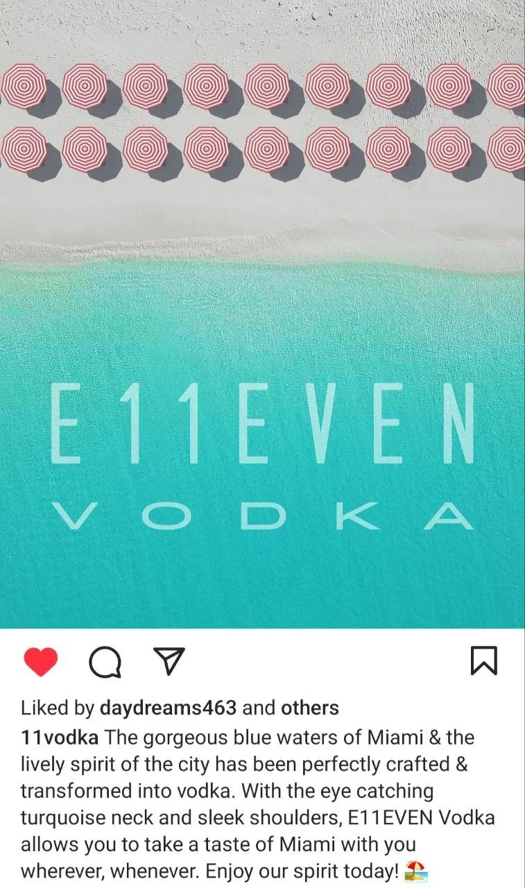 Miami is the place to be for a luxuriously festive lifestyle. To truly live it up in this magical city, opt for E11EVEN Vodka. Experience the Miami flavor with an all-natural, 11/10 vodka that knows how to party. 😎